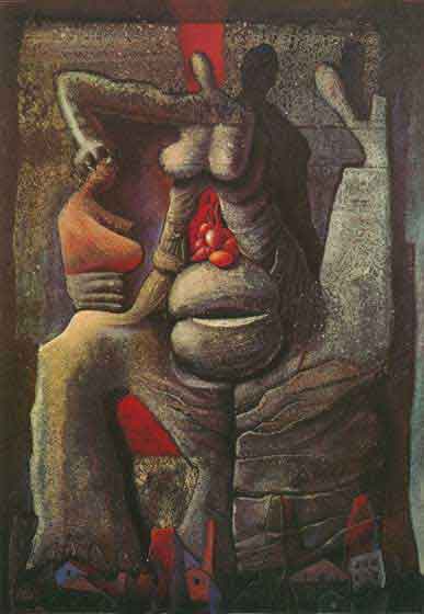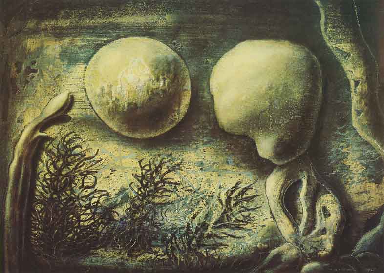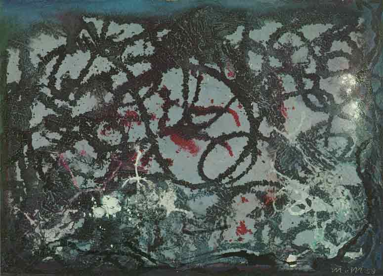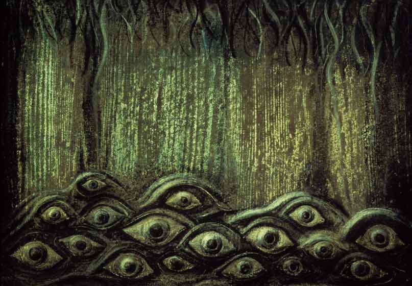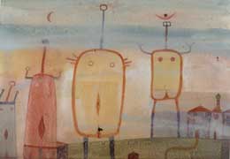 | Lichtgeister, 1971 Tempera und Öl aquarellierend auf Papier, auf Karton aufgezogen, 42 x 59 cm. Privatbesitz |