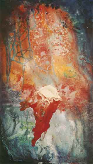 | Lichtgeister, 1971 Tempera und Öl aquarellierend auf Papier, auf Karton aufgezogen, 42 x 59 cm. Privatbesitz |